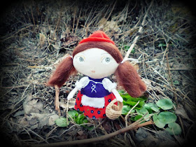 Красная шапочка высотой 13 см. Материалы - шерсть мериноса, фетр, хлопок, бязь.